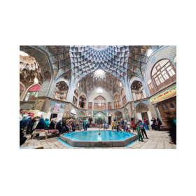 le Bazar de Kashan présente une architecture d'un faste rare, notamment la coupole marchande de Amin od-Dowleh, avec son grand puits de lumière achevé en 1868. Le complexe du bazar abrite plusieurs mosquées et madreseh, des tombeaux, caravansérails, des arcades, des bains et des réservoirs d'eau.