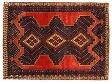 ![]() | Tapis Afshar - porte le nom de la tribu Afshar qui a été déplacée vers le pays de Kerman sous le règne de Shah Tahmasb Safavid. Les nomades de la tribu Afshar vivent dans les plaines entre Sirjan et Baft. Les villes de Babak, Sirjan, Baft, Raber et les régions à l'ouest de Jiroft sont les plus importants centres de tissage de tapis connus sous le nom d'Afshar. Les tapis Afshar sont noués avec des teintes de rouge et de bleu et ont souvent des motifs rectangulaires. La variété de leurs designs est assez élevée. | |