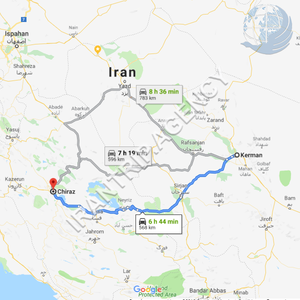 - Distance : environ 35 km au sud de Kerman (environ 40 minutes en voiture).