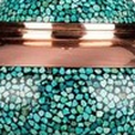 Principalement à Ispahan et Shiraz | ![]() | Firoozeh Kari Koobi ou turquoise incrusté de Perse est l’une des plus belles œuvres iraniennes. Firoozeh koobi se compose de métaux tels que le cuivre, le laiton, l’argent ou le bronze, sur lesquels de petites pièces de pierres turquoise sont placées côte à côte avec une colle spéciale. |