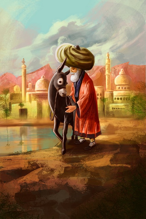 Un jour, Nasreddin Hodja monta sur son âne et se mit en chemin pour un village