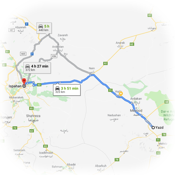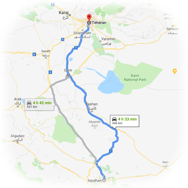 1.- Téhéran 2.- Chirâz 3.- Yazd 4.- Ispahan 5.- kâchân | |||||||||