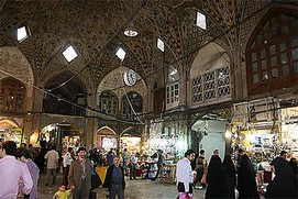 - le bazar. Tabriz est célèbre pour son bazar. Il serait le plus long bazar au monde (environ 3 km sur 2, soit une superficie d'environ 6km²). La vingtaine de cours couvertes qui le constituent, le style architectural et la diversité des échoppes figurent parmi les aspects les plus apparents de ce bazar.