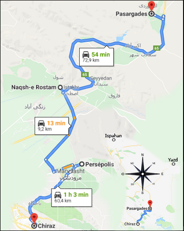 ![]() | PASSARGADES est une cité antique bâtie à 1 900 mètres d'altitude dans le Zagros et à environ 62km de Persépolis, dans l'actuelle province du Fars en Iran. Ce fut la première capitale historique de l'Empire perse. Pasargades est bâtie par le roi achéménide Cyrus II. Pasargades reste la capitale jusqu'au règne de Darius Ier qui déplace son siège à Persépolis. Sur le mausolée de Cyrus II, on pouvait lire :« Passant, Je suis Cyrus le Grand, J'ai donné aux Perses un Empire et J'ai régné sur l'Asie, Alors ne jalouse pas ma tombe. » |