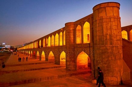 Les trois plus connus de ces ponts, onze au total, sont le Sharestan, chef-d’œuvre de la période sassanide au IIIe siècle, le Si-o-se Pol, le pont aux 33 arches, et le Pol-e Khaju. Avant la conquête arabe, ces ponts séparaient la ville iranienne et la ville juive. Ils constituent l’un des plus évidents témoins de l’art de vivre qui baigne encore par endroits l’ancienne capitale safavide, beaucoup plus accueillante que la dure Téhéran, beaucoup plus charmeuse que la petite Chiraz. C’est en partant de là qu’il faut aller à la rencontre des monuments fameux de la ville : mosquées de la place Khomeiny, l’une des plus grandes et des plus belles du monde, construite sur un ancien terrain de polo de 500 mètres de long par 160 de large et dominée par deux mosquées emblématiques, celle de l’imam et celle de Cheikh Lotfallah, et le très beau palais d’Ali Qapu aux quarante colonnes (qui n’en comporte que dix-huit et triche avec les reflets de ses pièces d’eau) ; vaste complexe religieux de la prière du vendredi.